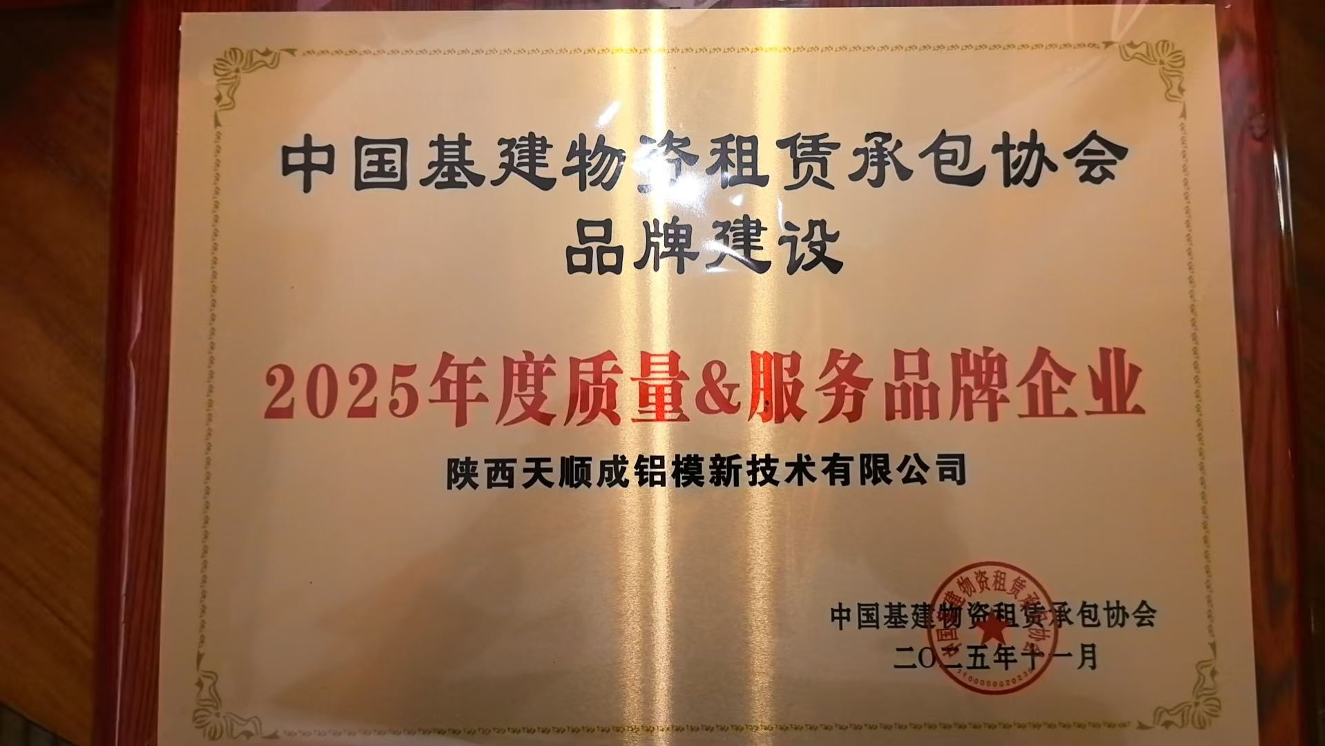 為全面推進(jìn)行業(yè)品牌建設(shè),提升企業(yè)品牌形象和核心競(jìng)爭(zhēng)力,2025年度,中建租協(xié)繼續(xù)開(kāi)展了“品牌建設(shè)”評(píng)選活動(dòng),在行業(yè)內(nèi)遴選品牌標(biāo)桿,培育和推廣名優(yōu)企業(yè)。經(jīng)過(guò)資料初審、專(zhuān)家評(píng)審評(píng)議及公示,陜西天順成榮獲“2025年度質(zhì)量&服務(wù)品牌企業(yè)”稱(chēng)號(hào)。