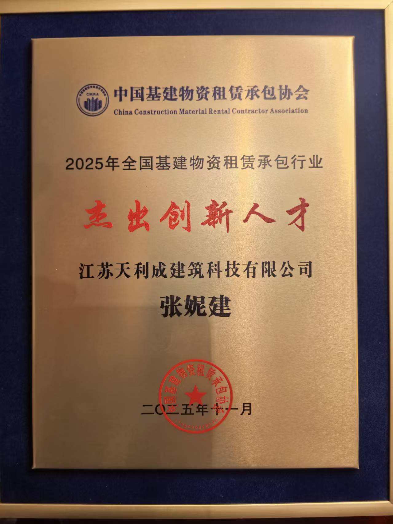 江蘇天利成物資經(jīng)理張妮建榮獲“2025年全國(guó)基建物資租賃承包行業(yè)杰出創(chuàng)新人才”稱(chēng)號(hào),意味著天利成企業(yè)在人才培養(yǎng)方面取得了顯著成果。