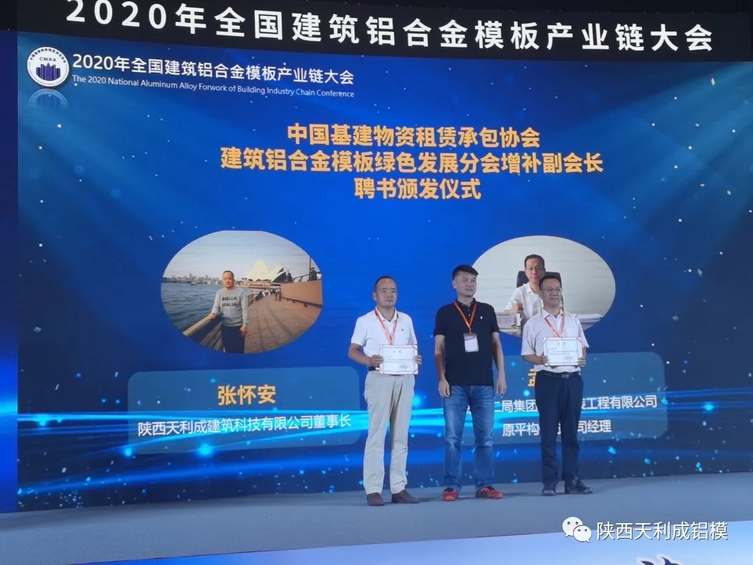 本次大會聚焦鋁模建筑,大力推進“以鋁代木”工作。通過開展政策研究、標(biāo)準(zhǔn)研制、科技成果評定與推廣、技術(shù)交流、產(chǎn)學(xué)研合作、國際交往等活動,助推鋁合金模板行業(yè)高質(zhì)量發(fā)展。天利成企業(yè)董事長張懷安被聘為副會長及年度十大風(fēng)云人物;天利成企業(yè)總經(jīng)理馬光,榮獲杰出人才創(chuàng)新獎;天利成企業(yè)技術(shù)副總王強創(chuàng)作的《建筑鋁合金模板舊板翻新再利用》論文,榮獲優(yōu)秀論文獎,被收錄在建筑產(chǎn)業(yè)鏈大會論文集中。
