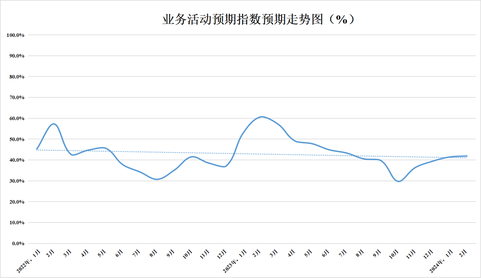業(yè)務(wù)活動預(yù)期指數(shù)41.9%,較上月上升0.5個百分點,低于臨界點,表明企業(yè)對市場信心有所恢復(fù)。